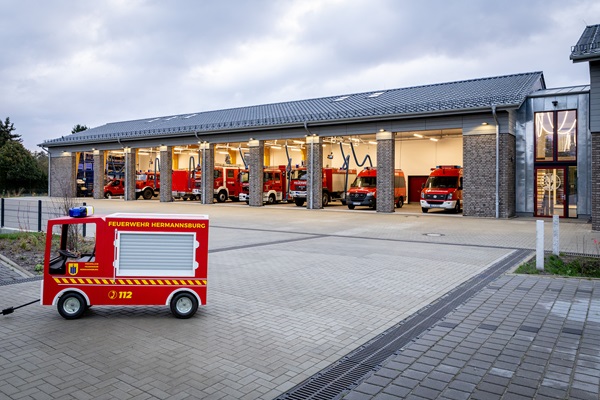 Die Gemeinde Südheide errichtet im Ortsteil Hermannsburg den Neubau eines Feuerwehrgerätehauses, das zwei Standorte im Gemeindegebiet zusammenführt. Bei einer Nettogeschossfläche von ca. 1.300m² bietet der Neubau Platz für Funktionsräume für insgesamt 140 Feuerwehrfrauen- und männer. Die Halle bietet Platz für acht Einsatzfahrzeuge. Sowohl die Fahrzeughalle, als auch das zweigeschossige Wachengebäude werden komplett als Holzbau errichtet.