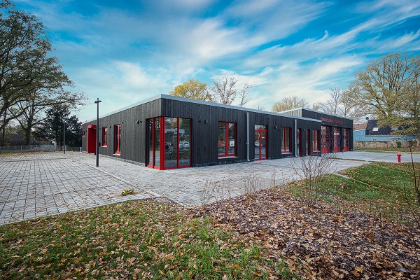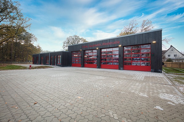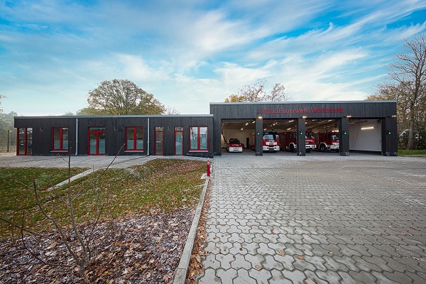 Der Neubau des eingeschossigen Feuerwehrgerätehauses mit Fahrzeughalle in Westercelle unterteilt sich in die Wache mit Flachdach und die Fahrzeughalle mit Pultdach, die Platz für vier Einsatzfahrzeuge bietet. Das Projekt wurde in Holzrahmenbauweise mit Holzbalkenlage bzw. Leimholzbinder-Rahmen realisiert. Die Fassade wurde mit lotrechter karbonisierter Holzverschalung verkleidet und durch rote Fenster und Tore wurden ein Kontrast zur Außenbekleidung geschaffen. Die Beheizung erfolgt über eine Wärmepumpe, die durch eine Lüftungsanlage mit Wärmerückgewinnung ergänzt wird.