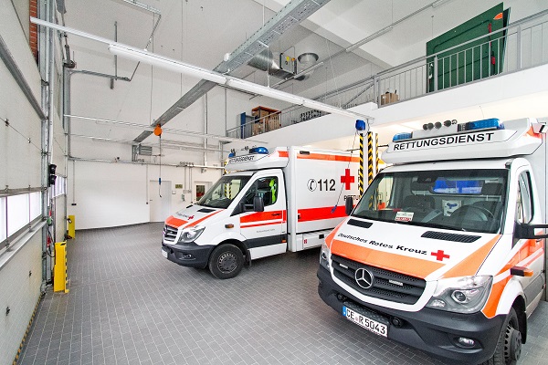 Der Umbau der Rettungswache in Celle umfasst vier Teile: Die Ergänzung der Rettungswache um die ehemalige Notfallpraxis, den Umbau einer kleineren Fahrzeughalle zu einer Desinfektionshalle, die Integration einer Hochebene in der Fahrzeughalle und zuletzt die Errichtung eines neuen Carports. Gegliedert wird die neue Rettungswache in die Bereiche Aufenthalt und Büro, Sanitär sowie Ruheräume und Hallen; dabei erfolgen die Verbindungen über die notwendigen Schleusen. Insbesondere beim Farb- und Materialkonzept wird viel Wert auf ein einheitliches, modernes Erscheinungsbild mit Unterscheidung der Funktionsbereiche gelegt. So wurde ein ansprechendes Arbeitsumfeld auch unter Berücksichtigung des Corporate Designs des Deutschen Roten Kreuzes geschaffen.