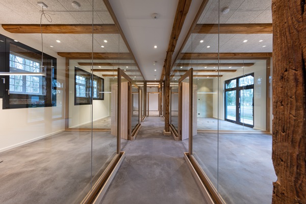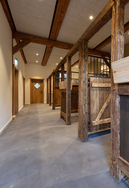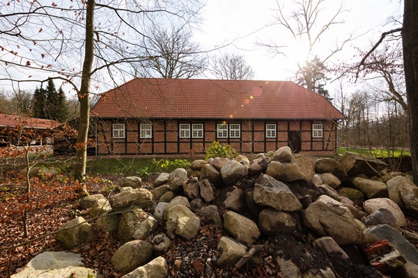 Für den Bundesforstbetrieb Wense war der Umbau eines ehemaligen Pferdestalls zu Büroräumen erforderlich, wodurch eine Nutzungsänderung vom Stall- zum Bürogebäude vorgenommen wurde. Geplant wurde der Umbau des Erdgeschosses des eingeschossigen Fachwerksbaus zu einem Besprechungsraum, vier Büroräumen und den dazugehörigen Funktionsräumen. Dabei wurde die bisher in dem Gebäude liegende Wildkammer in einem anderen Gebäude untergebracht. Im Zuge des Umbaus durfte die Gebäudehülle nicht verändert werden, sondern musste aufgrund des unter Denkmalschutz stehenden Ensembles in ihren Urzustand zurückversetzt und restauriert werden. Durch verschiedene Maßnahmen, wie einem bodengleichen Eingang mit elektrisch öffnender Tür und Taster und einem ebenerdigen Fußboden im gesamten Gebäude, konnte das Bürogebäude barrierefrei ausgeführt und die Anforderungen an die Inklusionen erfüllt werden.