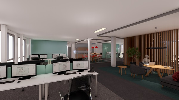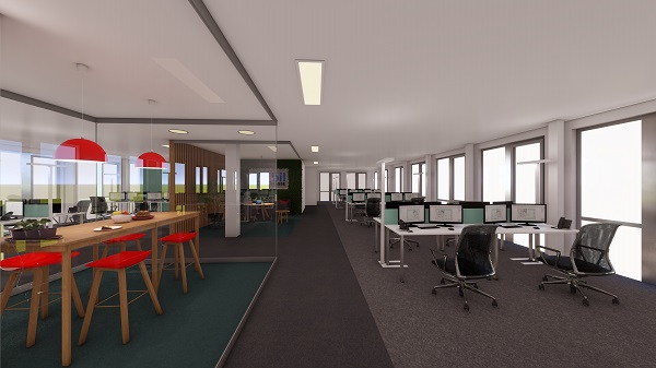 Das viergeschossige Bürogebäude rahmt den Festplatz auf der Allerinsel in westlicher Richtung ein. Die vorhandene Lindenallee wurde in der Planung berücksichtigt, und leitet zukünftig die Nutzer, Besucher und Kunden direkt zum Haupteingang und in das zentrale Treppenhaus des Gebäudes. Im Gebäude werden vorrangig Büroflächen bereitgestellt, im Erdgeschoss wurde eine vierzügige Kinderkrippe geplant. Mit der geplanten Fertigstellung und Inbetriebnahme im Juli 2025 ist der erforderliche Bedarf an Krippenplätzen in der Stadt Celle vollumfänglich gedeckt. Im Hinblick der Nachhaltigkeit wurde auf eine Wärmepumpe, in Verbindung mit der Nutzung des Nahwärmenetzes gesetzt. Zusätzlich wurde neben einer PV-Anlage auch ein Gründach berücksichtigt. Die hochwärmegedämmte Fassadenbekleidung aus Metall erhält eine helle und freundliche Farbgebung, die symmetrisch angeordnete Gliederung der Fenster verleihen dem Gebäude seine Struktur.