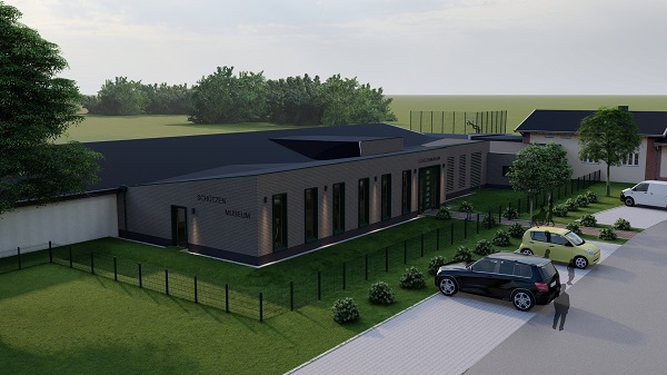 Das neue Schützenmuseum wird an die bestehende Schießhalle (Theo-Wilkens-Halle) und die neue Technikzentrale angebaut und umfasst neben einer ca. 150 m² großen Ausstellungsfläche für die Gemälde und Exponate des Schützenvereins auch ein rollstuhlgerechtes Besucher-WC, sowie einen Personal- bzw. Aufbereitungsraum mit Werkbank und Pantry-Küche. Der Neubau ist eingeschossig und gleicht sich optisch den anderen Neubauten an. Aus diesem Grund wird das Schützenmuseum ebenfalls mit einem Pultdach ohne Dachüberstand ausgebildet und mit einer vertikalen Holzverschalung in Naturoptik verkleidet. Um dennoch einen Kontrast zu dem Technikanbau und dem Sanitärbereich zu schaffen und das Schützenmuseum in seiner Funktion hervorzuheben, verspringt der Neubau in südlicher Achse, sodass sich die Technikzentrale unterordnet. Die Wände und Dachdecke sowie erforderliche Stützen und Unterzüge werden in Holzbauweise konstruiert.