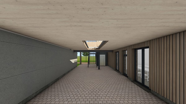 Die Gemeinde Tappenbeck plant auf einem Areal von insgesamt 42.880 m² ein neues Sportzentrum aus unterschiedlichen Sportplätzen im Außenraum sowie einem Vereinsheim, einem Dorfgemeinschaftshaus, ein Gebäude für die Kyffhäuser und einer Schießsportanlage mit 50m und 100m Schießbahn unter einem Dach in L-Form. Die Gebäudeteile Vereinsheim und Dorfgemeinschaftshaus sind als Holzrahmenbau oder Holzmassivbau mit Stahlbetonsockel geplant. Das Gebäude der Kyffhäuser wird als Mischbau in Mauerwerk und Stahlbetonweise erstellt. Der Hauptteil der Fassaden wird mit einer hinterlüfteten Holzfassade geplant, in Teilen wird die Fassade mit Trespa Platten verkleidet. Da das Gebäude ein Stück weit mit dem Geländeverlauf eingegraben wird, ordnet sich das Gebäude gut in die Umgebung der Grünen Lunge ein. Das Gebäude ist barrierefrei. Die Dachflächen sollen begrünt und zum Teil mit Photovoltaikmodulen ausgestattet werden.