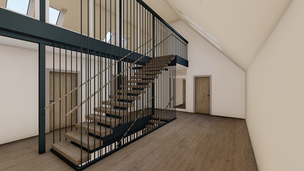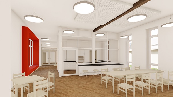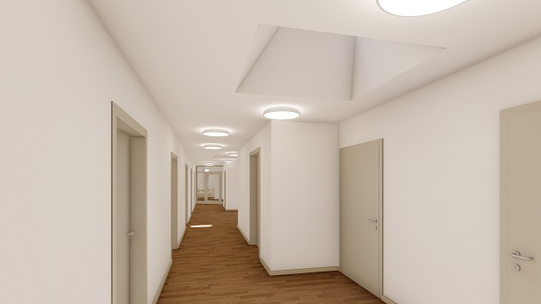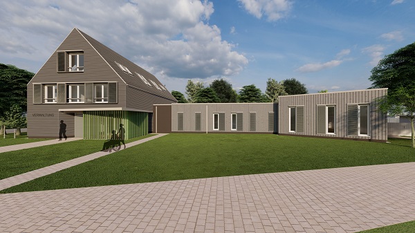 Bei der geplanten Baumaßnahme handelt es sich um den Neubau eines Verwaltungsgebäudes mit angrenzendem Wohnbereich. Das Gebäude wird in den Bereich Verwaltung und „Geschützter Bereich Sägenförth“ (GBS) aufgeteilt. Die Verwaltung ist zweigeschossig mit ausgebautem Dachgeschoss geplant und umfasst neben Büro- und Besprechungsräumen auch Abstell-, Lager- und Sozialräume, sowie Räume für die Haustechnik. Der „Geschützte Bereich Sägenförth“ ist eingeschossig geplant. Dort befinden sich Bewohnerzimmer, Aufenthaltsbereiche, sowie die entsprechenden Sozialräume mit Küchenbereich und Dienstzimmer. Oberhalb der Gründung und Sohle aus Stahlbeton wird das Gebäude im Holzrahmenbau mit horizontaler, bzw. vertikaler Holzverschalung errichtet. Lediglich der Sockelbereich und ein kleiner Teil im Übergangsbereich Verwaltung zu Wohnbereich wird mit einem Verblendmauerwerk ausgeführt. Das Satteldach der Verwaltung bekommt eine Ziegeleindeckung mit einer straßenseitig angeordneten Photovoltaik-Anlage. Der eingeschossige, geschützte Bereich wird mit einem flachen Gründach ausgeführt.